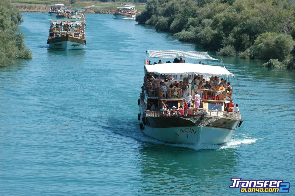 River Cruise starts from the town of Manavgat (transportation from/back to Alanya is included). Sailing through the green waters You'll see many small turtles sunbathing in tree branches by the river. Surrounded by the beautiful scenery You can sunbath on the top of the boat and relax enjoying cool refreshing breezes. At the end of the Manavgat river there is a great sandy beach which separates the river from the Mediterranean Sea. In this remarkable place cold fresh river water mixes with the warm salty sea water. You'll have a break for sunbathing on the beach and swimming either in the sea or in the river.